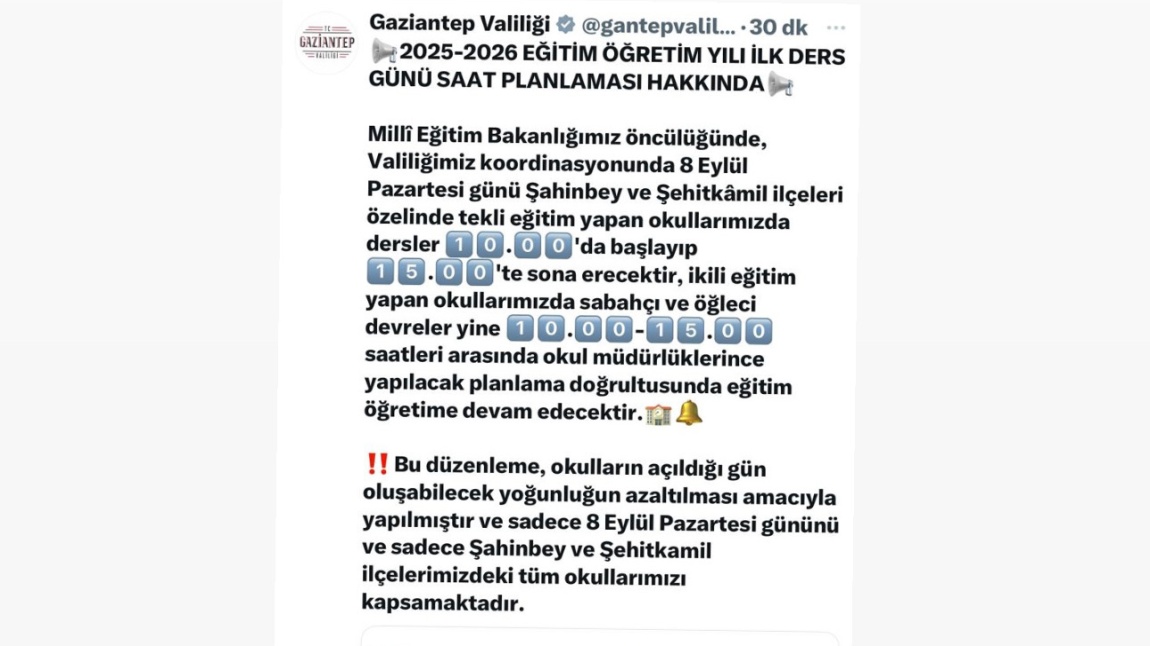 2025-2026 EĞİTİM ÖĞRETİM YILI İLK DERS GÜNÜ SAAT PLANLAMASI...