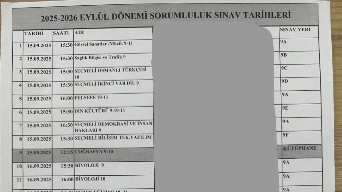 2025-2026 EĞİTİM ÖĞRETİM YILI EYLÜL DÖNEMİ SORUMLULUK SINAV...