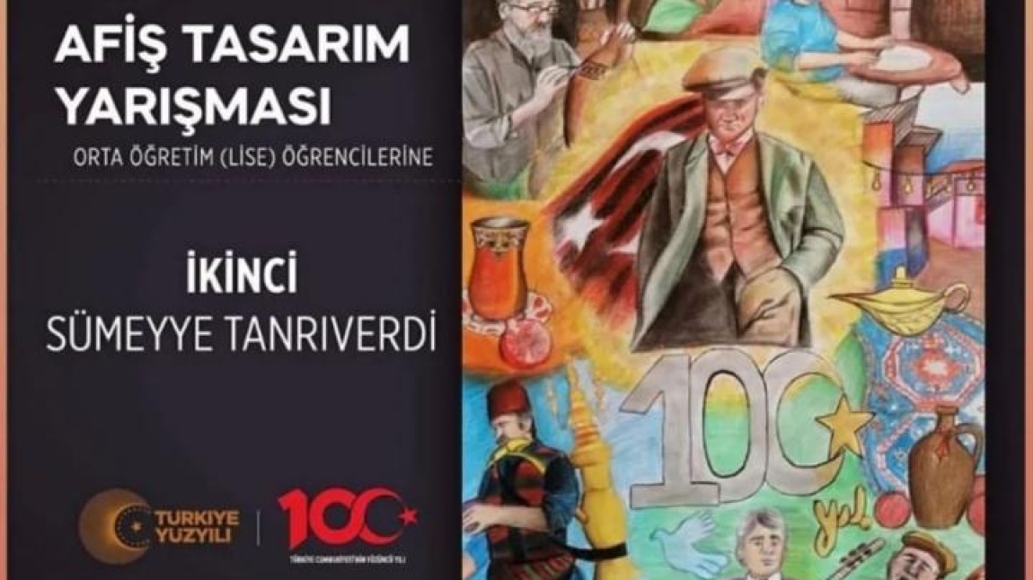GAZİANTEP BÜYÜKŞEHİR BELEDİYESİNİN DÜZENLEDİĞİ CUMHURİYETİN 100. YILI KONULU AFİŞ TASARIM YARIŞMASI'NDA ÖĞRENCİMİZ İKİNCİLİK ÖDÜLÜ ALDI